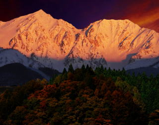 姫川を挟んで白馬村の対岸の高台よりもモルゲンロートの白馬鑓ヶ岳・杓子岳