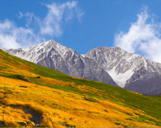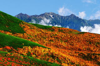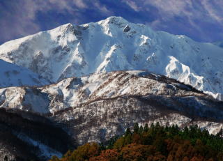 最盛期になっても豊富な残雪を残す。かなり早く初雪があり大雪渓が白く輝き非常にクッキリと
