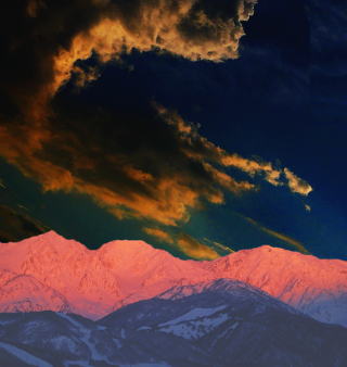 の後立山連峰を表現するするためにレッドを薄めてブルーを強調する画像処理。