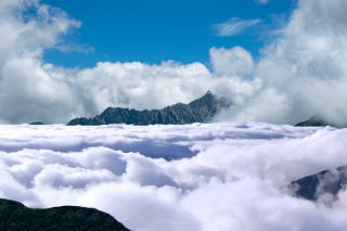 槍穂高の上空。積乱雲にターゲットを絞る。真っ白に盛り上がる積乱雲と青い