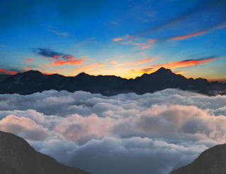 黒部峡谷に見事な雲海が湧いた夕方マジックアワーを狙う。スロー