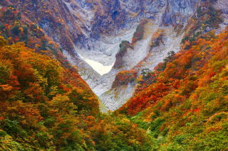 温帯地域で2000にも満たない低標高でありながら秋深くなっても見事に豊富な残雪を残す一ノ倉沢雪