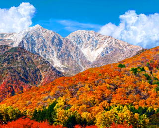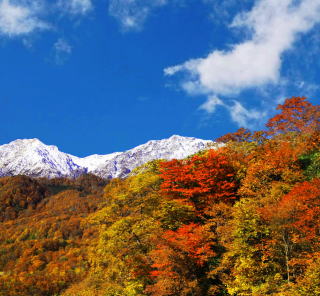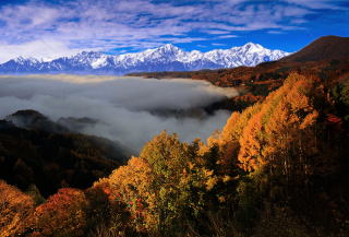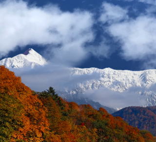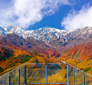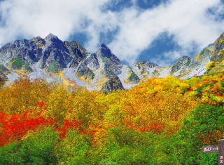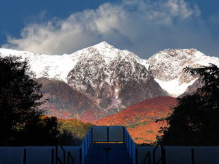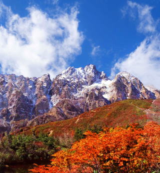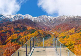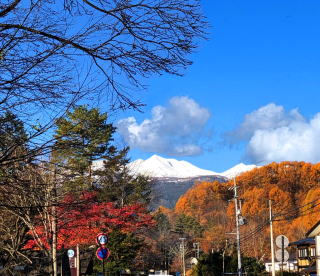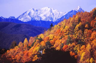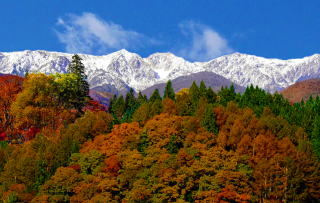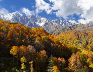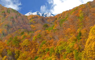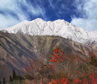 紅葉の最盛期に白馬三山に新雪が降る絶好のチャンスに恵まれたので黒菱林道より白馬三山を