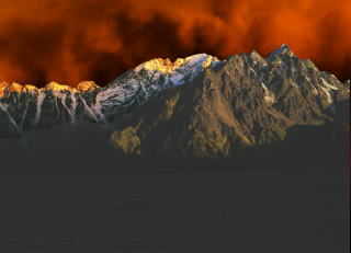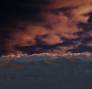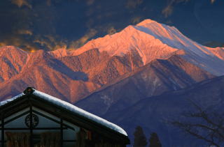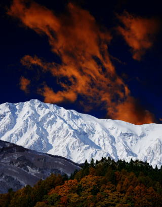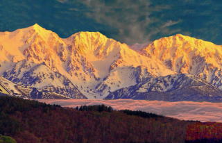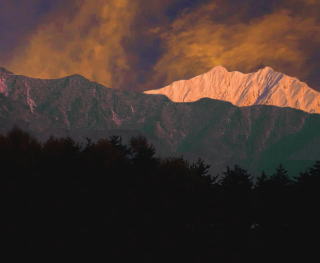 白馬三山の赤味を抑えると同時に逆にアケネ雲は赤味を強調する