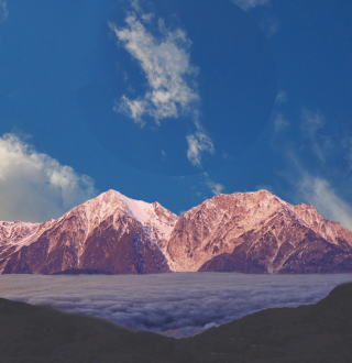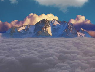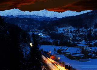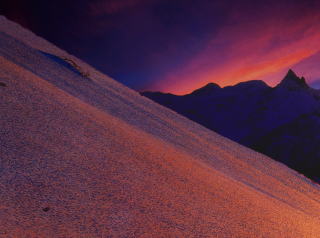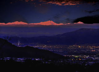薄暮(太陽が地平線より六度下にある時間帯で日没後にもかかわらず山がクッキリ白く輝く瞬間)直後に