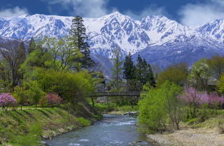 新緑の時期は雪解けと重なる。またこの時期に日本海をに低気圧が通過