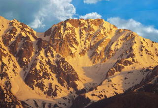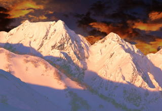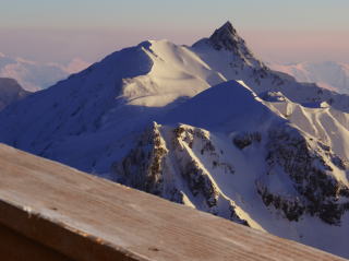 帰らずの岩峰が眼前に望める。日中はフラットだが夕方までねばると陰影がはっきり