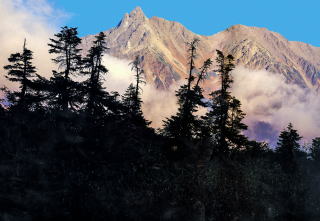 が燕岳の岩峰の上に剣岳を重ねる画像処理は結構難しい。
