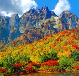 狙う。八方尾根稜線は紅葉する樹木が少ないので紅葉狙いには八方尾根北斜面を松川沿いに