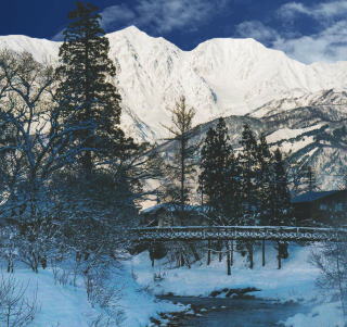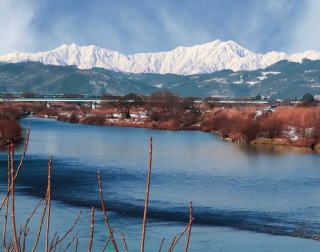 白馬大出吊橋公園は白馬三山を狙う最高のビューポイントの一つだ。白馬駅からもそれほど遠くないので冬季でも