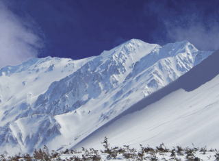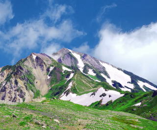 完璧に白くなる山として加賀の白山・出羽の鳥海山と並んで奥大日岳も名高い。いずれも日本海からの