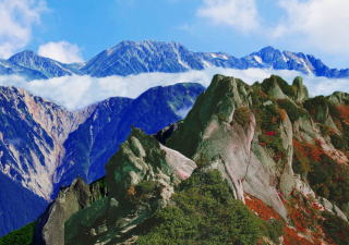 白馬大出吊橋公園より白馬鑓・杓子岳
