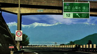 が甲府盆地と南アルプスビューポイントの一つ。岩崎高架橋の上は