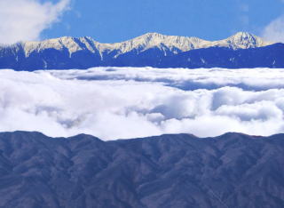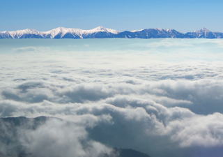 釈迦ヶ岳は甲府盆地東端に位置しているので甲府盆地に湧く雲海と南アルプスをツーショット