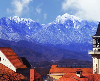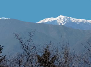 山梨県北斗市水車の里附近より甲斐駒とアサヨ峰を狙う。アサヨ峰はよく知られている甲斐駒や鳳凰