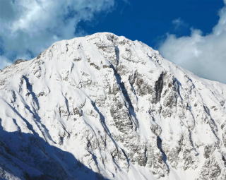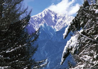 三山に挟まれているのであまり知られていないマイナーの山だが標高の割には新雪で見事に白く輝く。