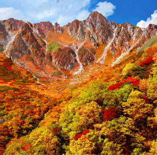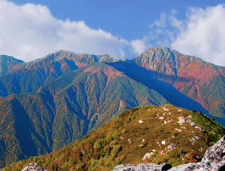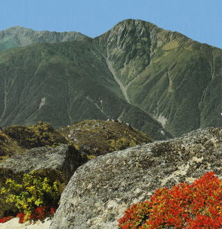 晩秋に全山見事に染まった赤石岳の紅葉は南アルプス随一と言われている。笊ヶ岳
