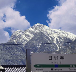 中央線の日野春駅はプラットホームから眼前に甲斐駒ヶ岳を狙える。望遠レン