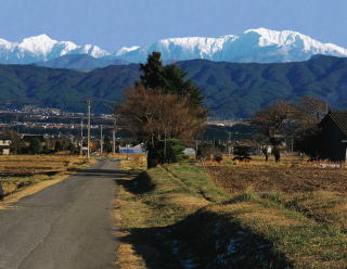 須玉IC近くの若神子地区の小高い丘から中央道・七里岩・甲斐駒ケ岳が横一線に