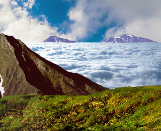と高度感がイマイチ。フォトショップとAIを活用して雲海の広がりと高度感を強調する画像処理。