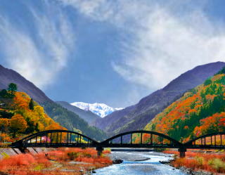 を利用して大きく取り込んだAI合成画像。左から農鳥岳・間ノ岳・北岳。