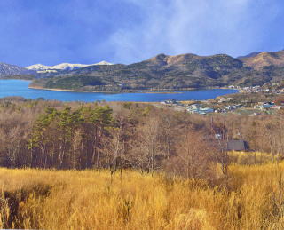 富士見山山頂は夏はカラマツが茂り眺望は殆ど効かないが、冬カラマツが落葉すると樹間より