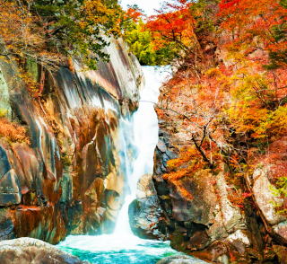 我が国名瀑の中でも必ず上位に選ばれるのが昇仙峡仙娥滝だ。特に紅葉の美しさは秀逸。秋の
