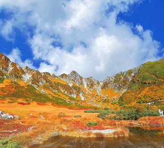 下界では、まだ残暑がのこる9月下旬千畳敷カールでは紅葉がはじまる。黄色に紅葉する