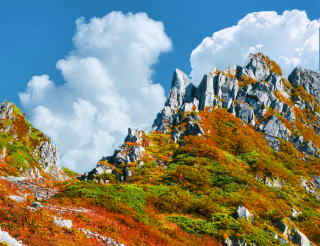 冬の純白の姿に劣らず紅葉に染まる仙丈岳カールもすばらしい。秋の紅葉時期にはまだ