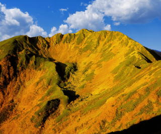 ピークが見事に均整のとれた巨大な双耳峰。全山見事に紅葉した秋の赤石岳は秀逸。。