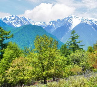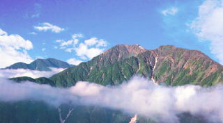 間ノ岳・農鳥岳は春になっても豊富な残雪があるので鮮やかな新緑との対照が素晴らしい。..温暖化