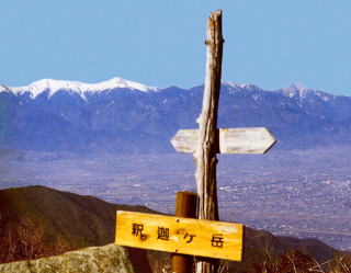 の甲府盆地方面からは見事な三角錐の名峰として名高い。甲府盆地の北から東に連なる大菩薩