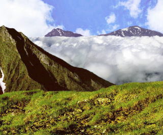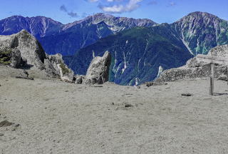 岩峰を連ねる横岳から硫黄岳までくると草原とケルンが印象的な硫黄岳