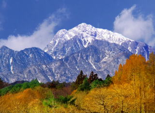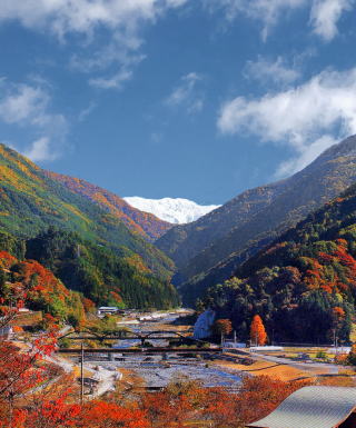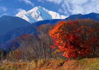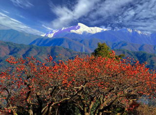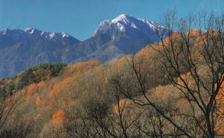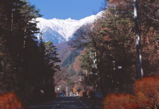 村は紅葉する木が多く新雪の甲斐駒との組合せは狙い。白州町・武川村から日野春にか