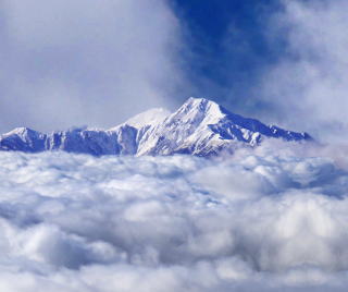 が高峰が雲海の上に浮かぶ。千畳敷カールの上に鋭いピークを見せる宝剣岳付近の山