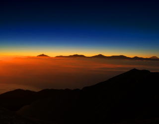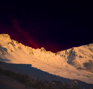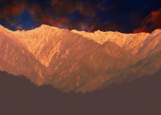 仙丈岳山頂のアーベンロート。眼前に黒いシルエットになった甲斐駒。その奥左手に八ヶ岳連峰・