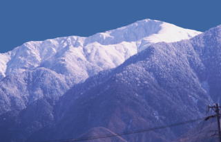 木曽谷から権兵衛峠のトンネルを抜けると伊那谷の先に南アルプスが横一線に並ぶ。トンネル出口