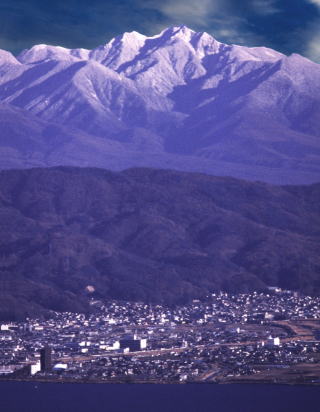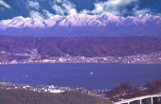南八ヶ岳が諏訪湖を挟んで対岸対角線上の真っ正面にあるので諏訪