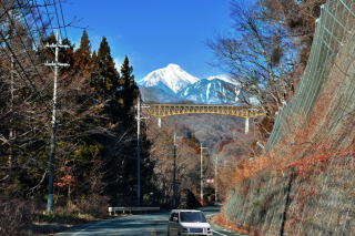 北岳を狙うビューポイントとして見落とせないのが八ヶ岳高原大橋だ。前面に八ヶ岳高原大橋を