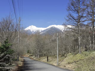 八ヶ岳山麓を小淵沢〜清里に延びる八ヶ岳公園道路(鉢巻道路)は左側に赤岳と権現岳を