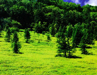 の針葉樹の疎林と草原のバランスが見事にとれていて美しい。