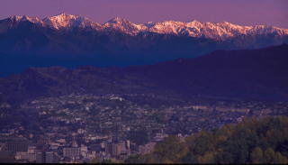 松本郊外の高台にある中山霊園は松本市街を眼下に後立山連峰を眺望