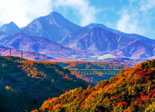 鉢巻道路山梨県営八ヶ岳牧場の先で東沢を渡る赤い橋として名高い東沢大橋は紅葉の名所としよくて知